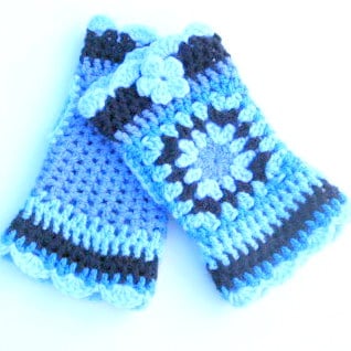 Crochet pattern for fingerless gloves. Granny square wrist warmers.