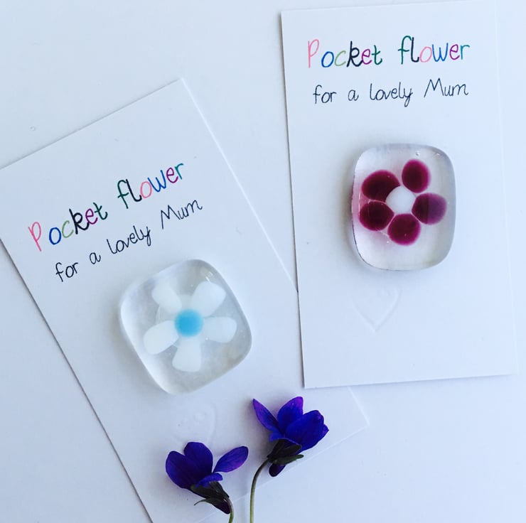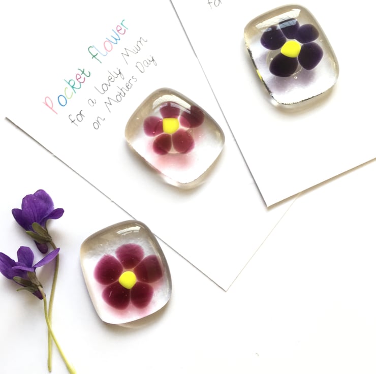 Pretty little fused glass flowers, perfect for keepsakes, or wedding favours