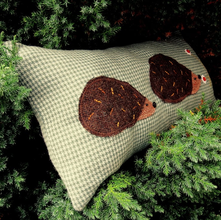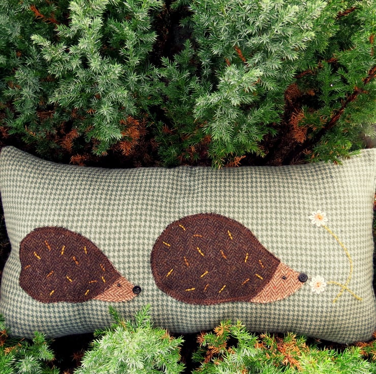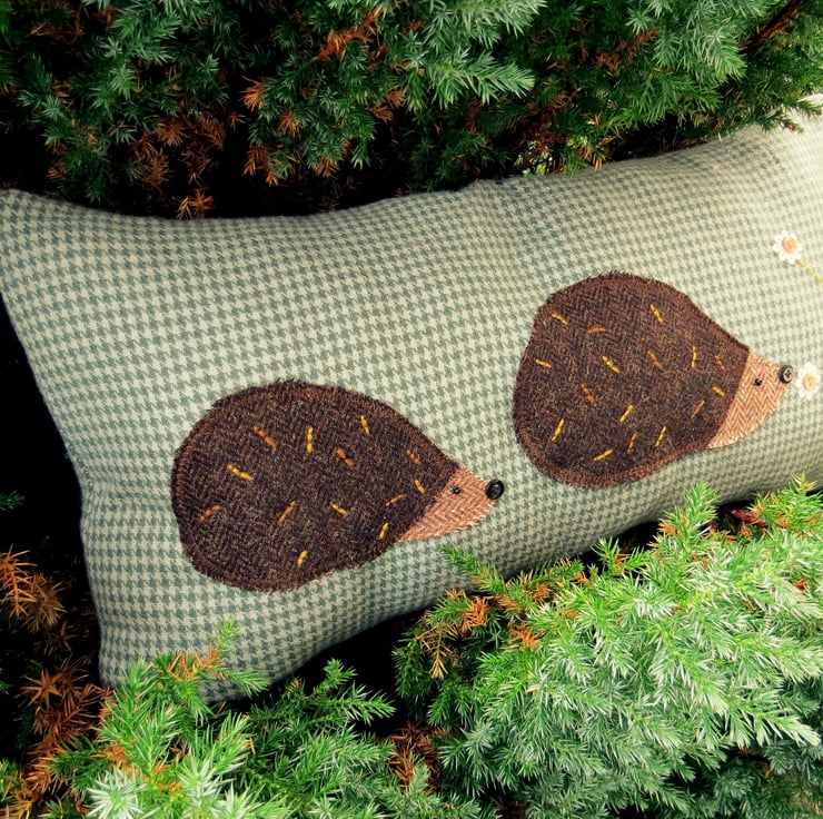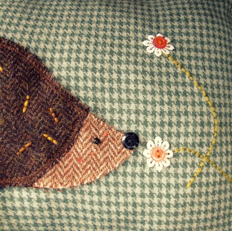 The hedgehogs have been made from a tactile tweed, with button noses.