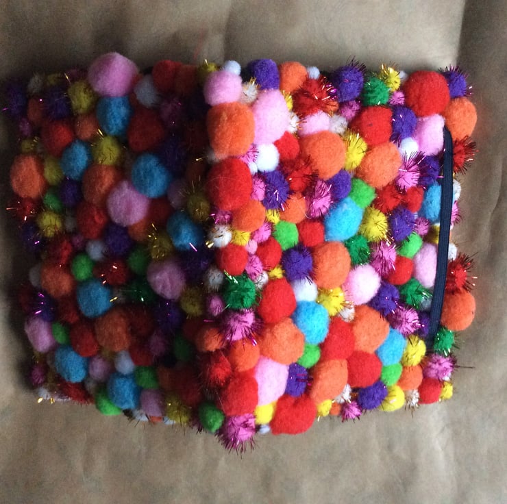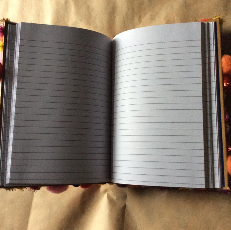 High quality A5 lined paper notebook, covered front and back with individually hand glued Pom poms.