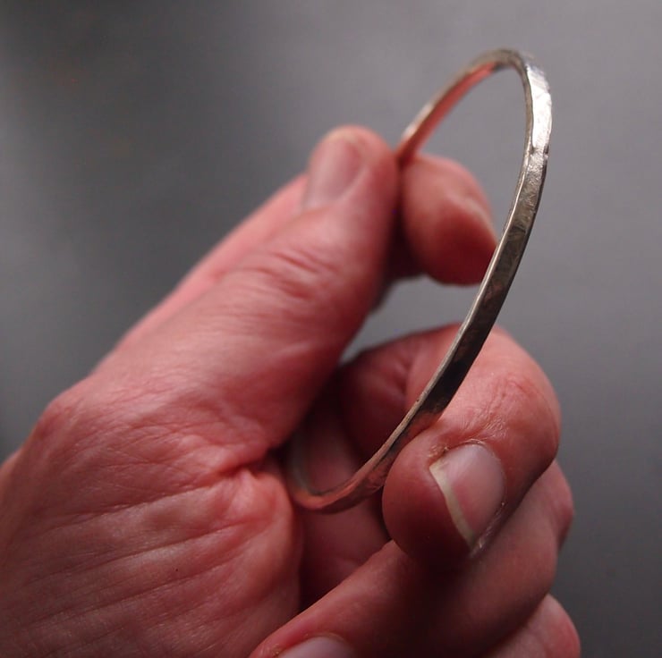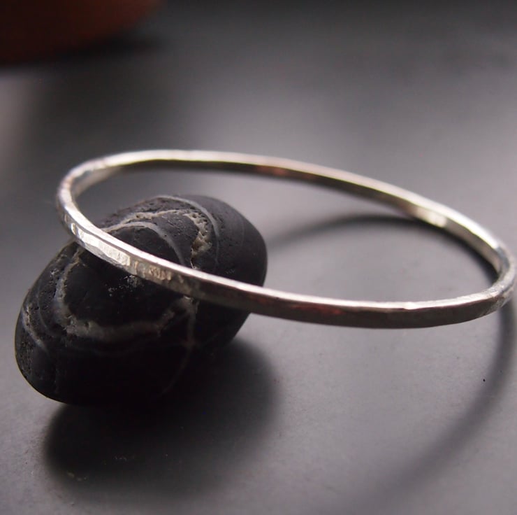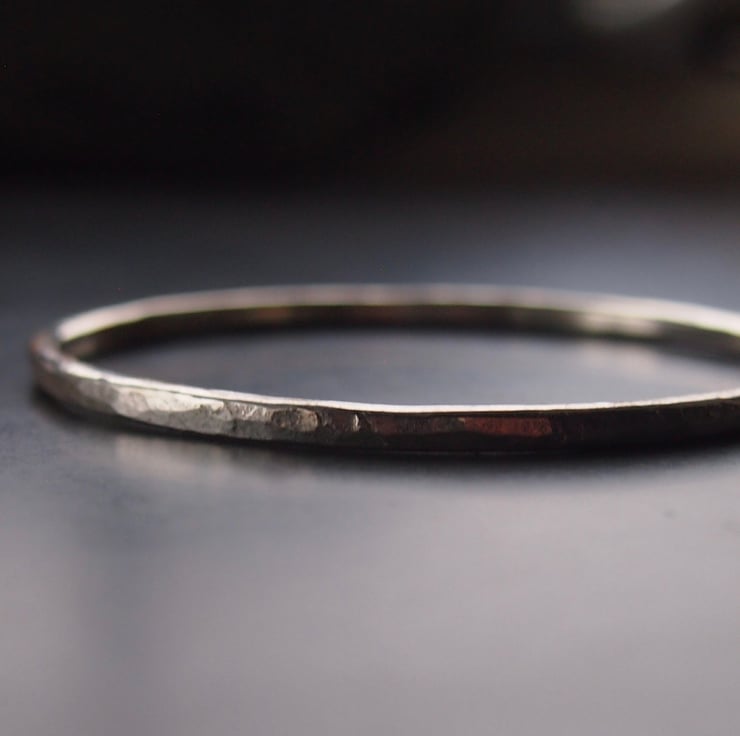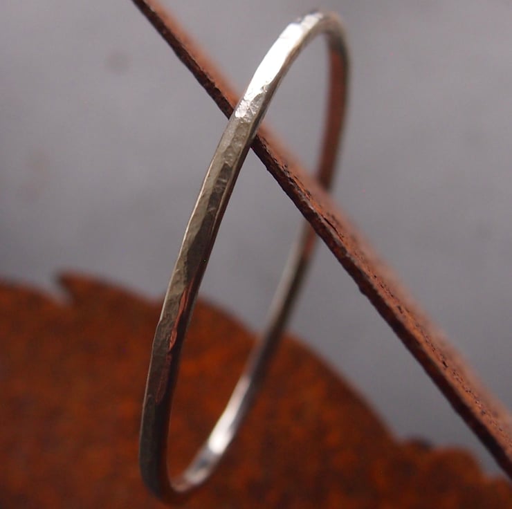 This is a nice substantial bangle forged into a smooth square section profile and textured with my favourite antique hammer. Made from 3mm wire.