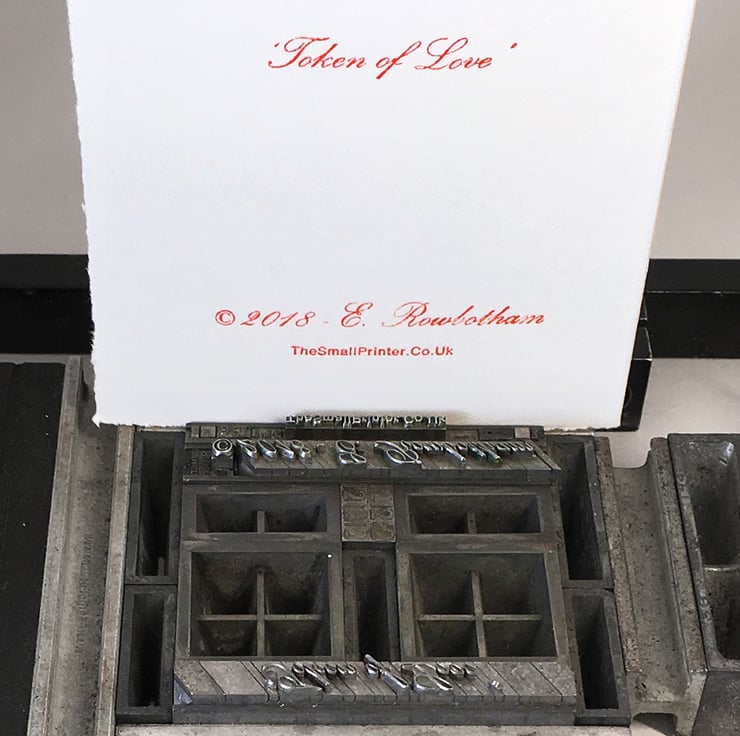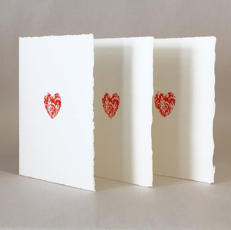 This Heart is hand-inked & printed, in a deep rich vermillion ink, using a rare beautiful piece of ornamental type. info on the back hand-set in old letterpress, hand inked & printed on my ancient Press.