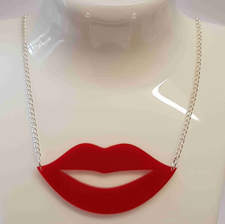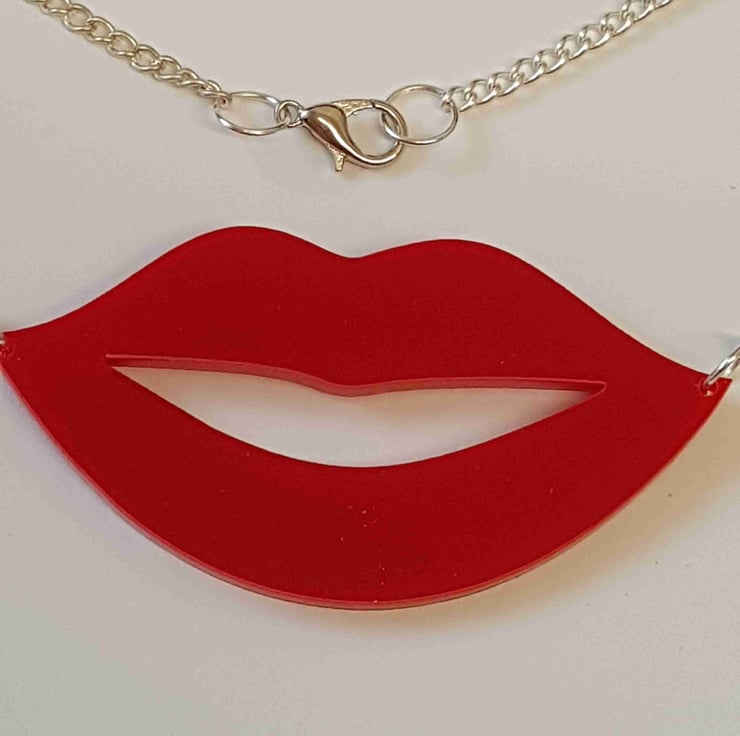 Pucker Up with this smashing hot lips Necklace. Charm is approx 6.5cm wide and is red in colour.