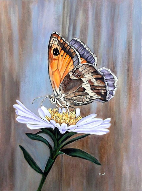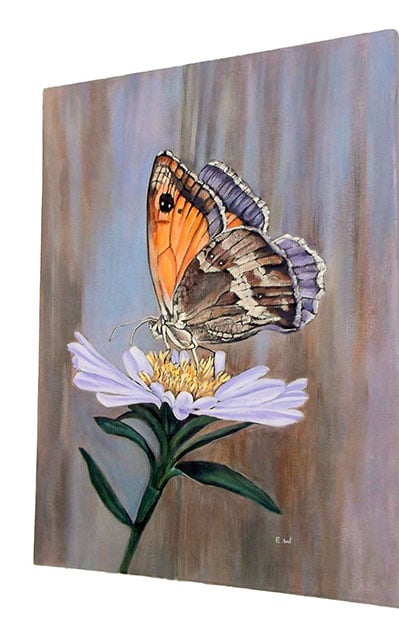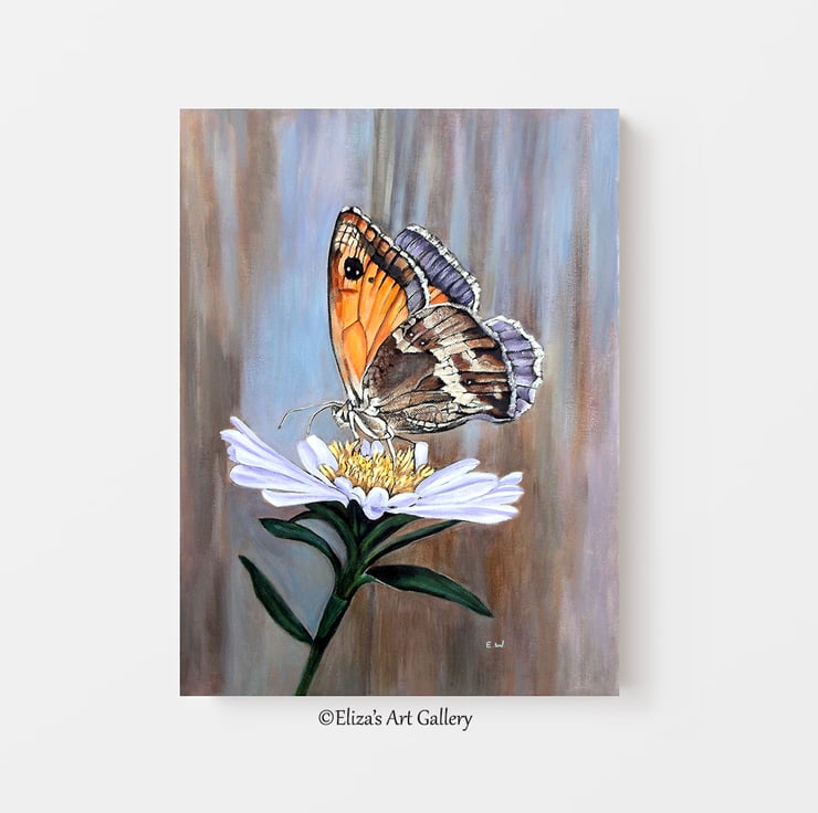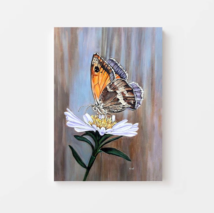 This Original Acrylic Artwork of a Meadow Brown Butterfly has been carefully painted onto a 100% Stretched Canvas measuring 16x12 Inches. I have used high quality Acrylic Paints.