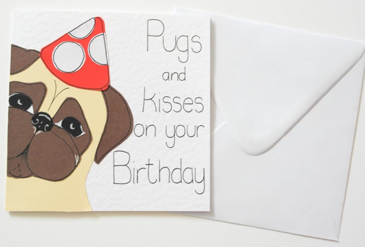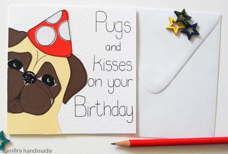 Each part is hand cut and they are then individually attached on top of the background. Then mounted to the card giving it a textured and slightly 'raised' appearance.I then draw around the picture and hand write the greeting.