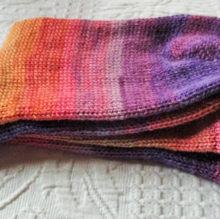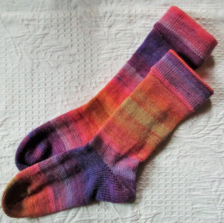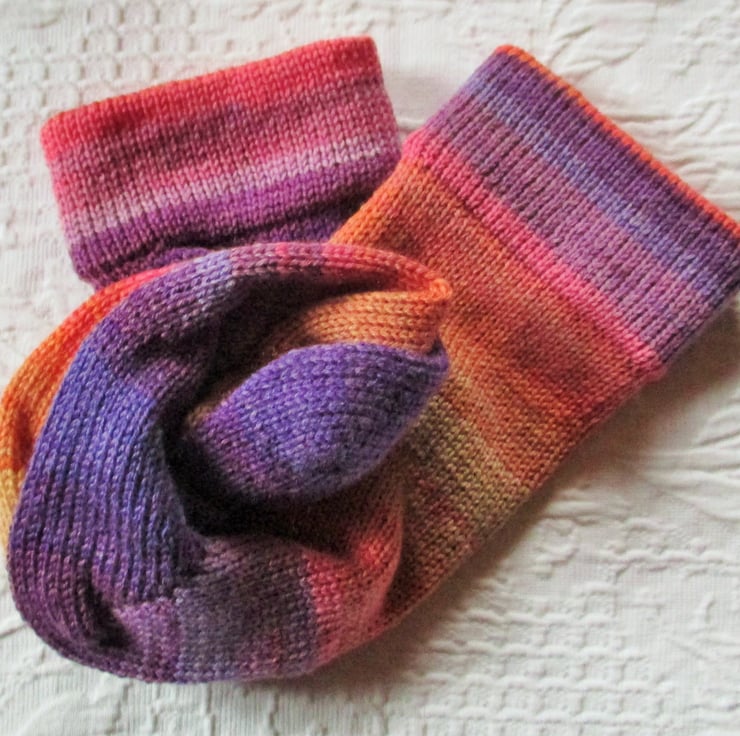 Inspired by the idea of a coat of many clours, these are socks of many colours, They are lovely to look at and feel glorious !!