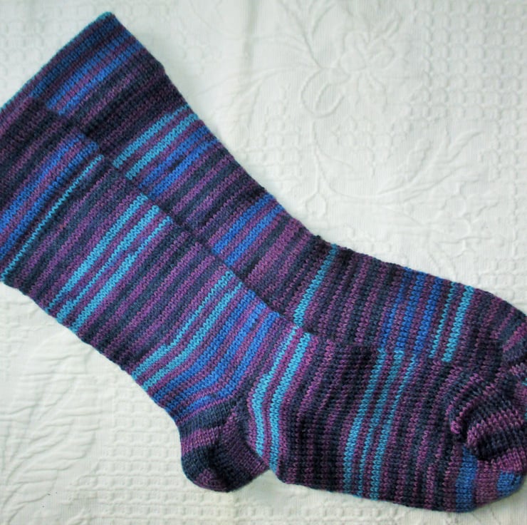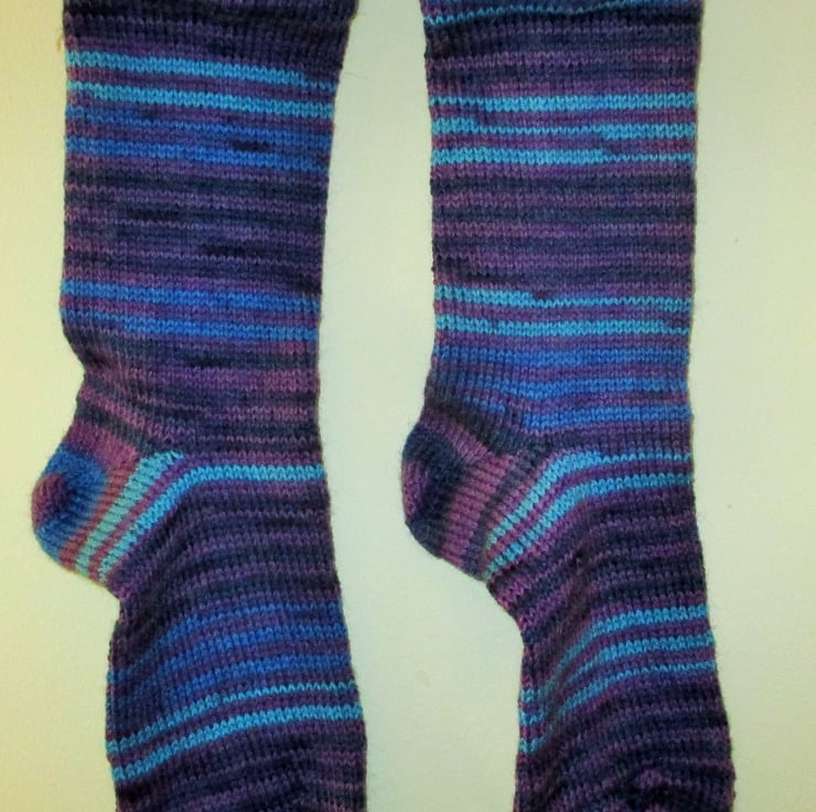 These socks were inspired by the colours and the feel of the yarn, the yarn reminded me of a seascape on a winters day.