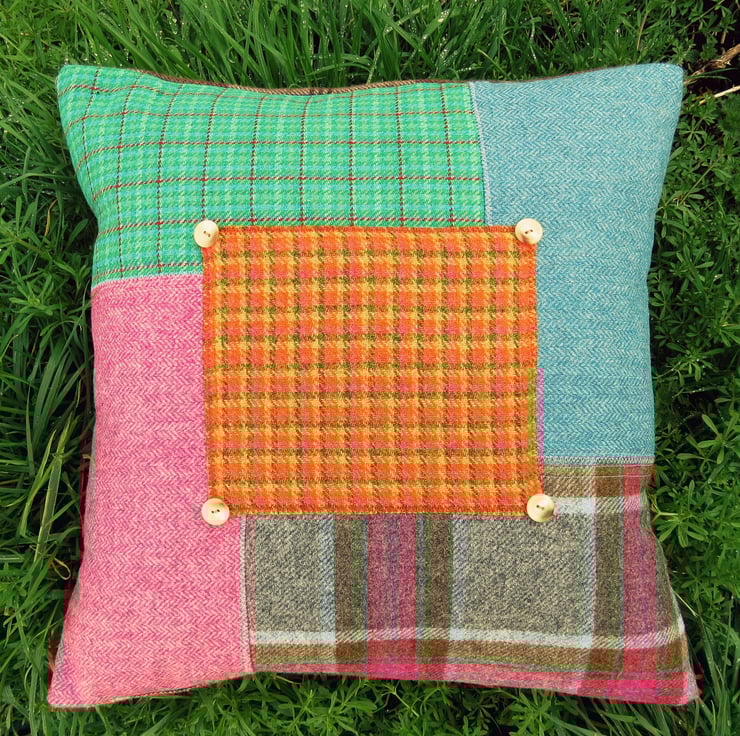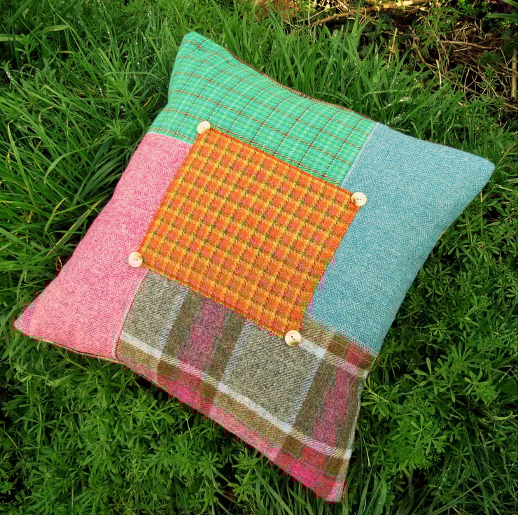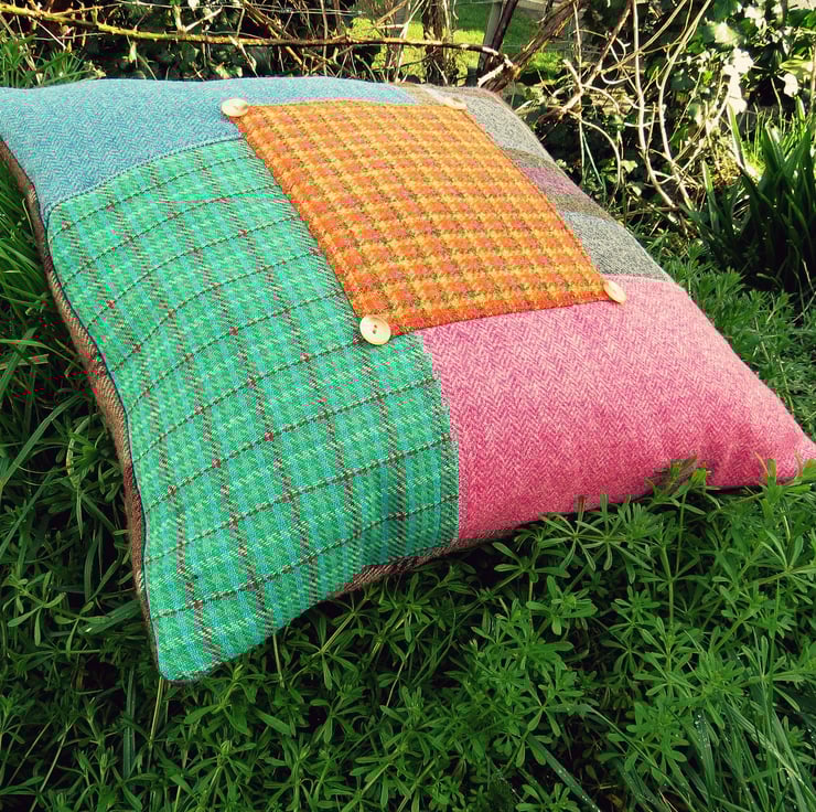 Made from a variety of herringbone and tartan wool fabrics, it comes complete with a feather pad.