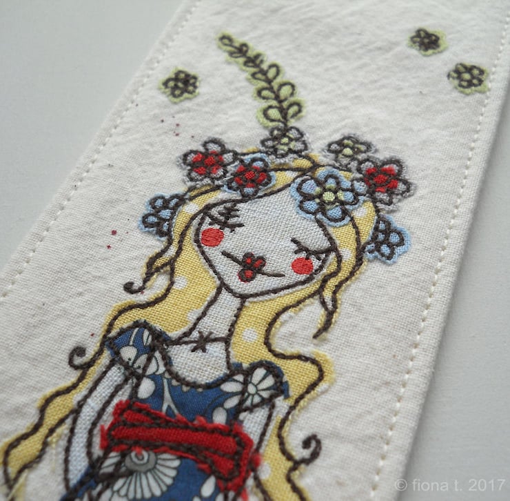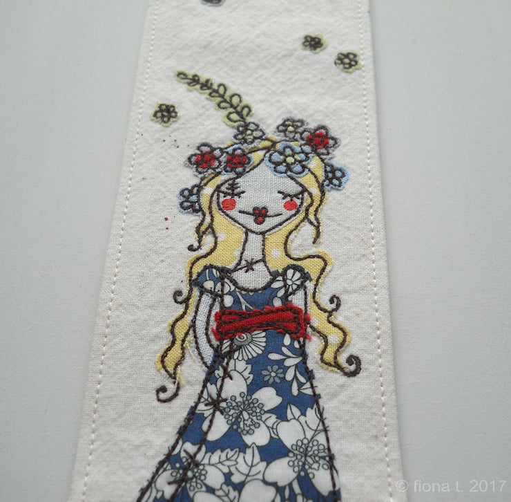 these bookmarks are made up with heavy weight cotton calico, stiffened with interfacing, and the edges are neatly top stitched.