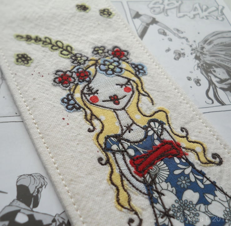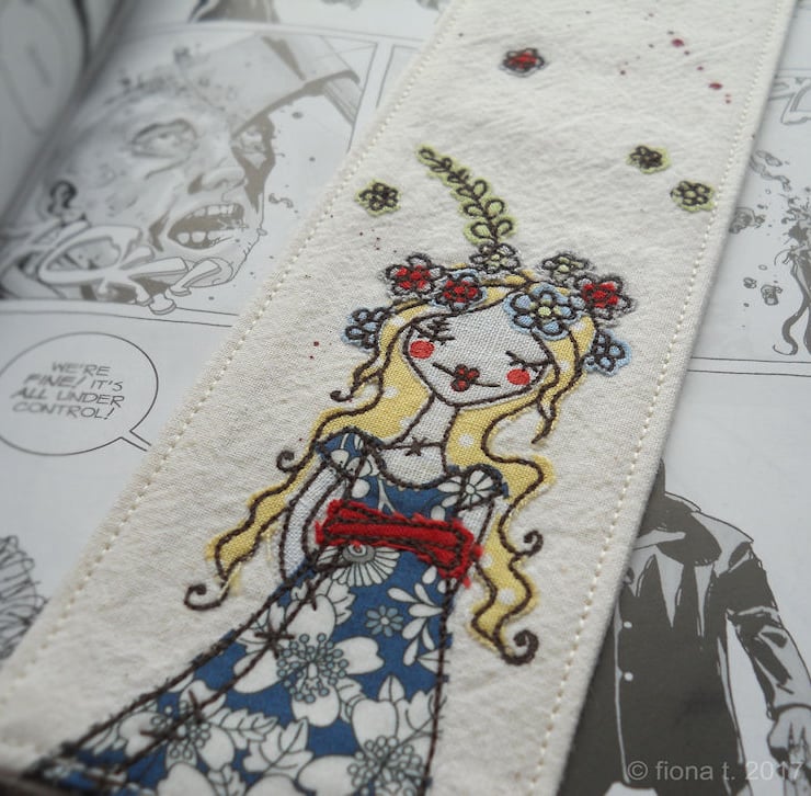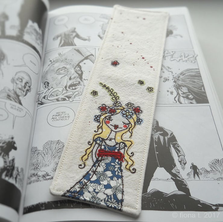 due to the very nature of free motion embroidery, blood spatter & handmade, each bookmark will vary eeeever so slightly.