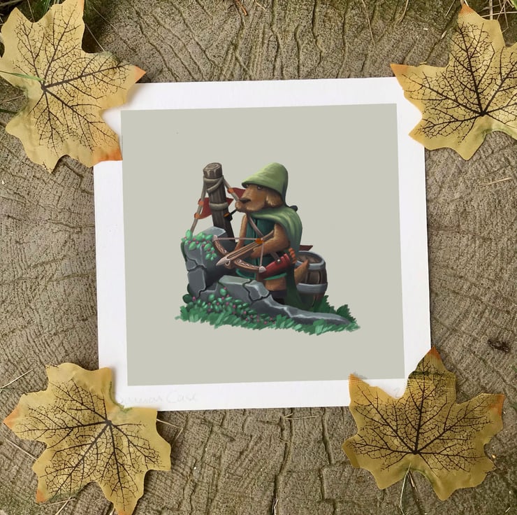 Be one of a select few to own one of these courageous 'Hunter Dog' limited edition art prints. Printed on 6" by 6" German etching with a 1" white border. Printed to order so can take up to 14 days to arrive. Print is numbered and signed by DuffleCat Prints artist Damian Case. Print is unframed.