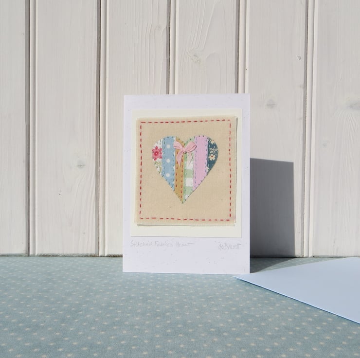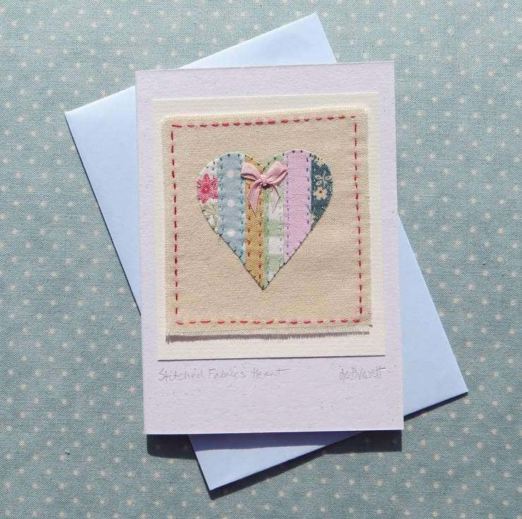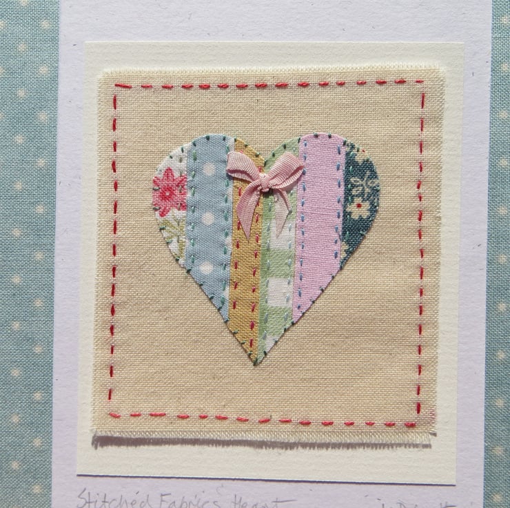 This little applique heart is made up of very pretty cotton print fabrics teamed with my own hand-dyed recycled cottons. Everything cut and stitched by hand, to make a unique and lasting way to give someone special your love. There is a tiny hand-tied silk ribbon bow at the top.