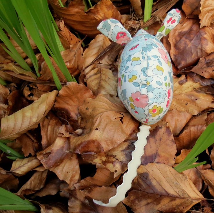 Her tail is made from velvet ric rac, held in place with a decorative button.
