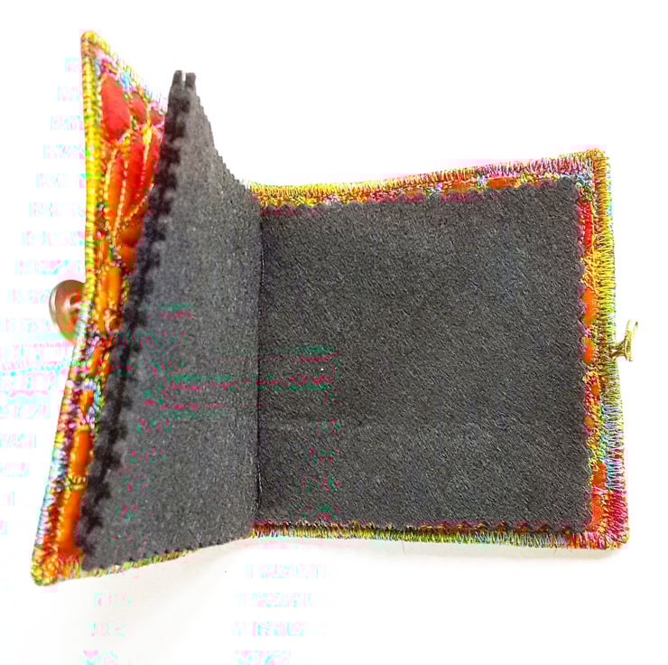 This is a handmade machine stitched textile sewing needle case.