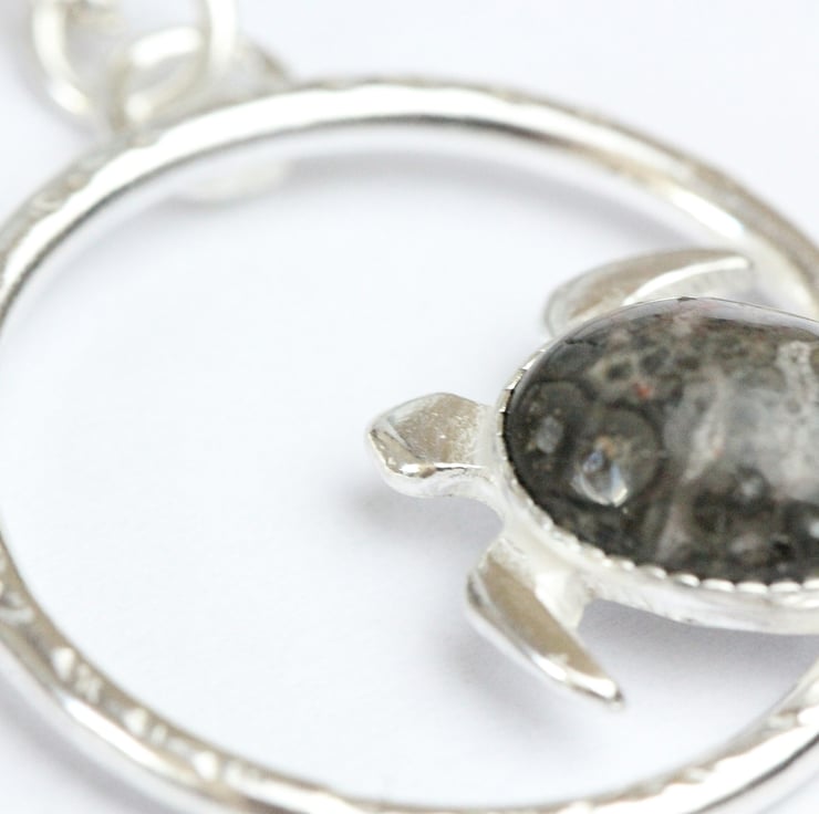 Cute sterling silver turtle necklace, with a leopard agate. (Please note as these stones are a natural material, the pattern and the colours may vary, but only slightly!)