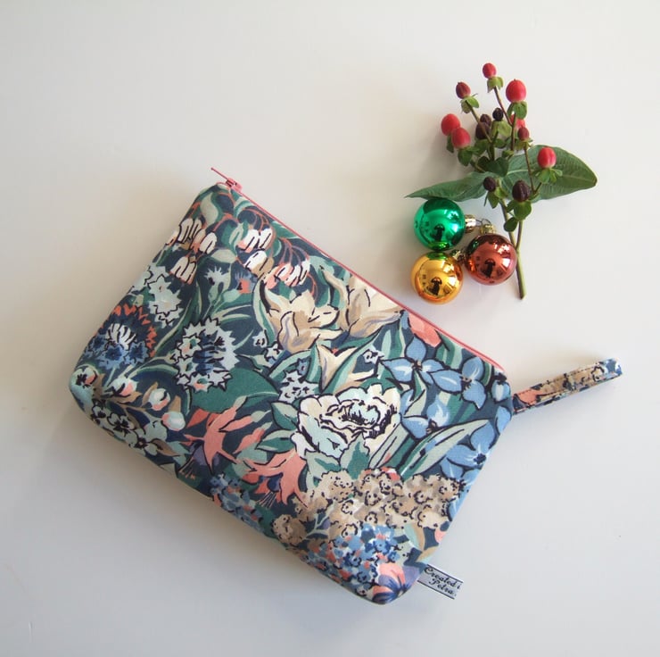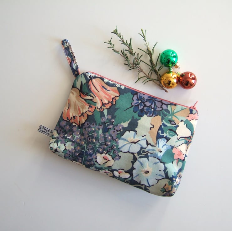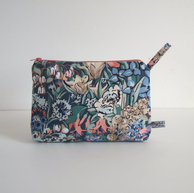 Its hard to believe, but this lovely Liberty print is actually a vintage fabric from the 1970’s. There's a feeling of flower power in the air with its pretty cottage garden flowers. This little zip up bag is perfect for make up or small amounts of toiletries. Perfect for a weekend travelling, it would also make a great gift for a vintage fabric fan, or as a lovely present for Mum.