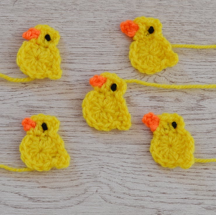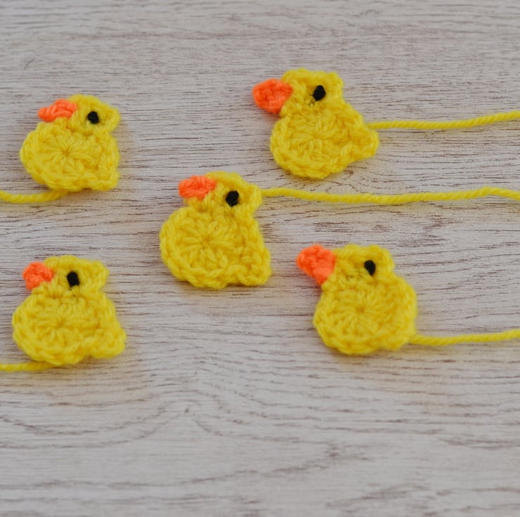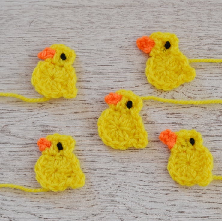 Hand crocheted in 100% acrylic yarn. You will receive 5 in total. They measure approx 4cm across taken at widest part which is the tail and 4cm in height. I have left the ends of the yarn long enough for you to sewn them onto your item. I can also make these in other colours.