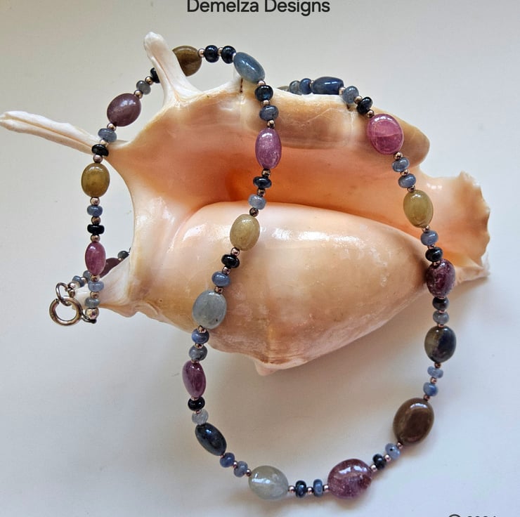 A beautiful genuine sapphire gemstone necklace has been designed and hand crafted in Cornwall to wear every day and for any occasion. It will be ideal for a professional lady to wear during working hours without it being too ostentatious and into the evening.