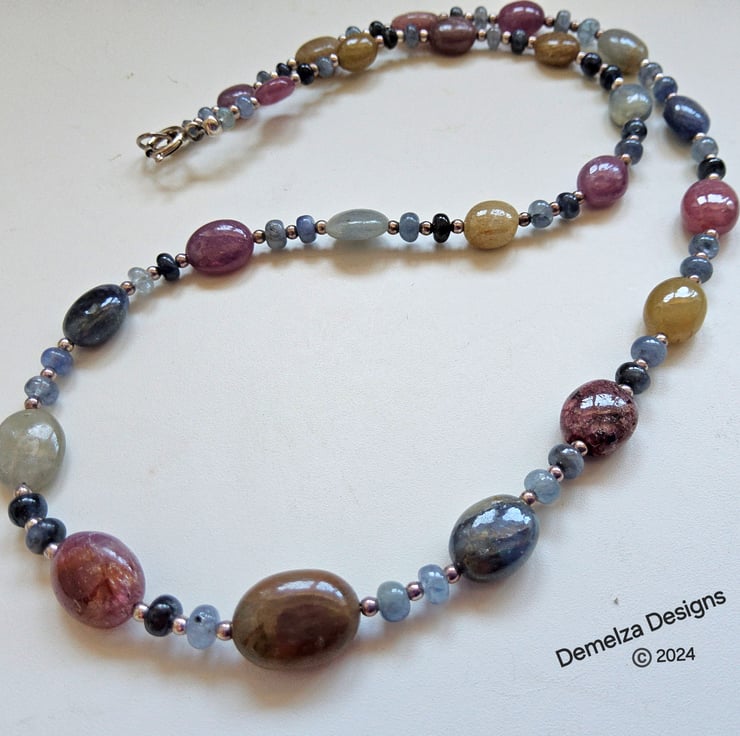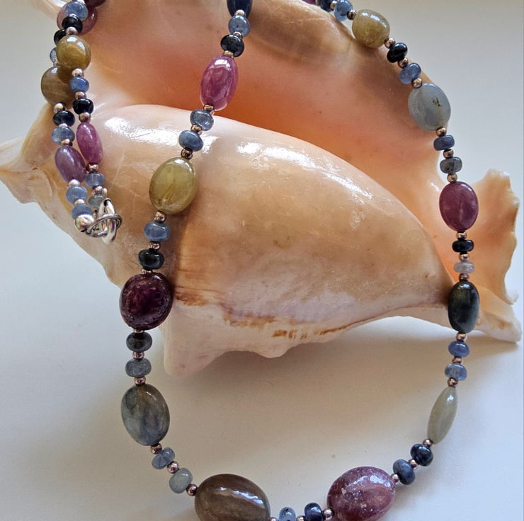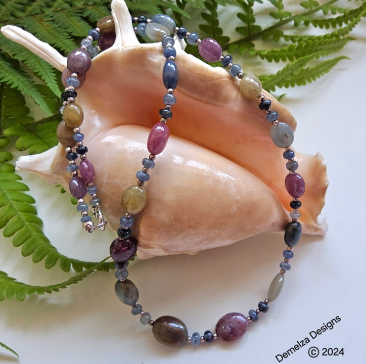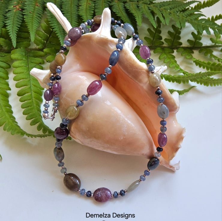 Unique Rare Hand Made Ruby, Sapphire Sterling Silver Necklace ONE OFF
