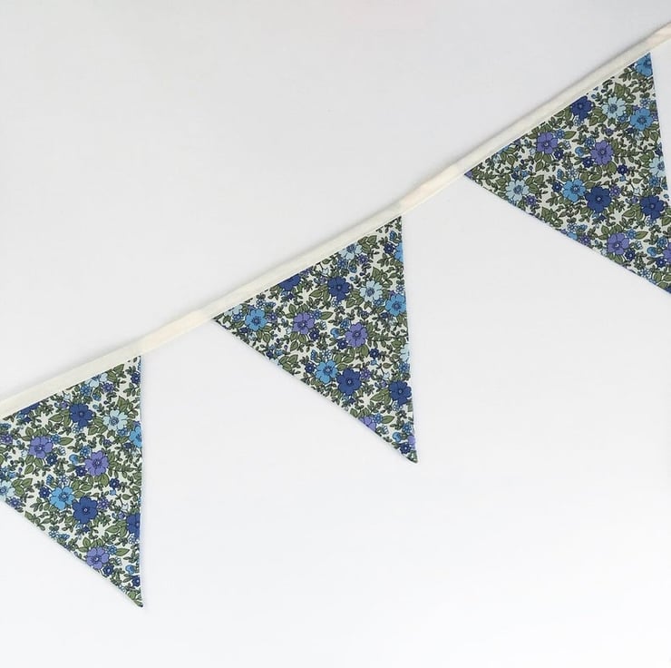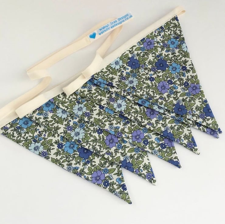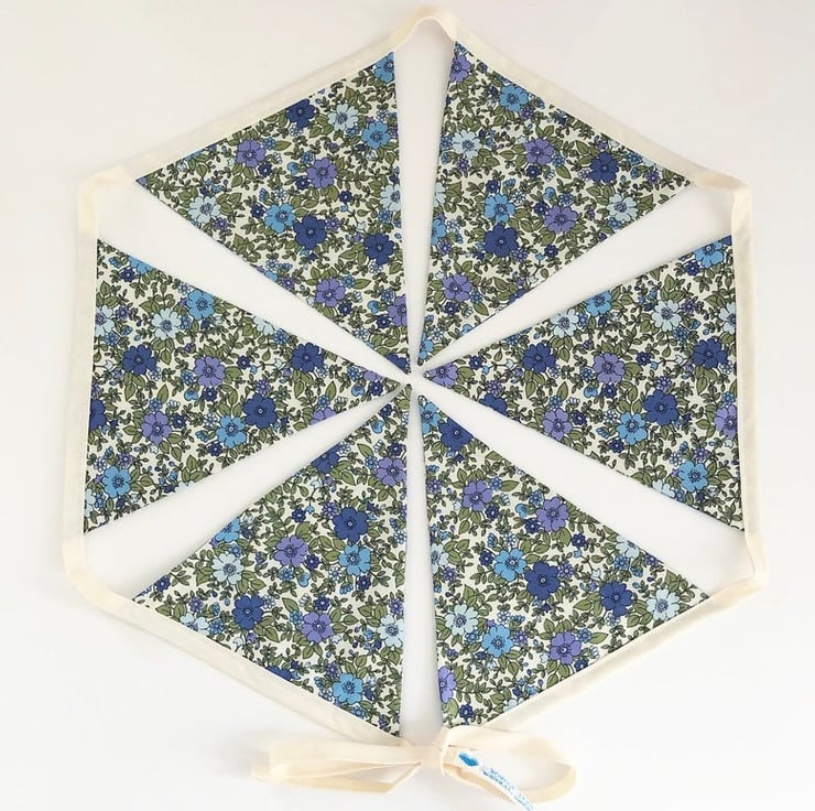 Floral Rose and Hubble fabric, made into 6 flags of bunting.