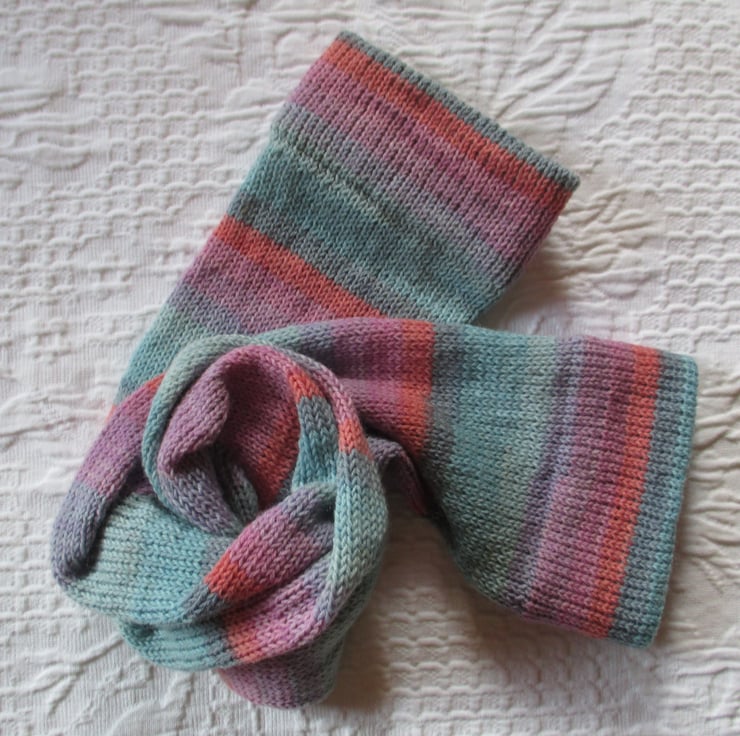 Inspired by the lovely feel and colours of this yarn. It reminds me of a summer day, rose gardens and blue skies ! They are lovely to look at and feel glorious !!
