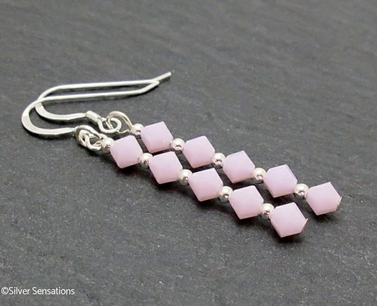 Pretty in pink, these handmade bridesmaids earrings have 5 beautiful pastel pink 4mm crystals in each earring, from the world renowned crystal manufacturer in Austria.