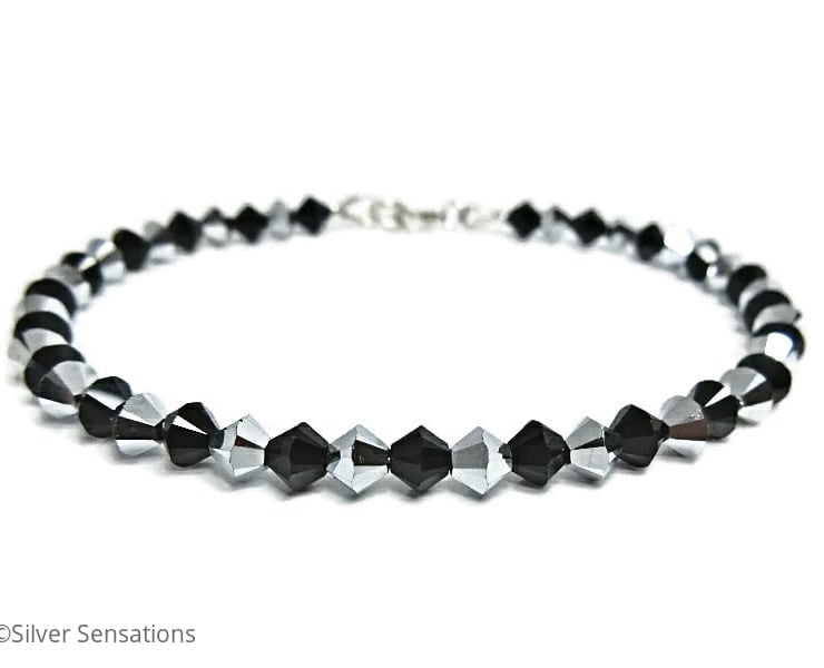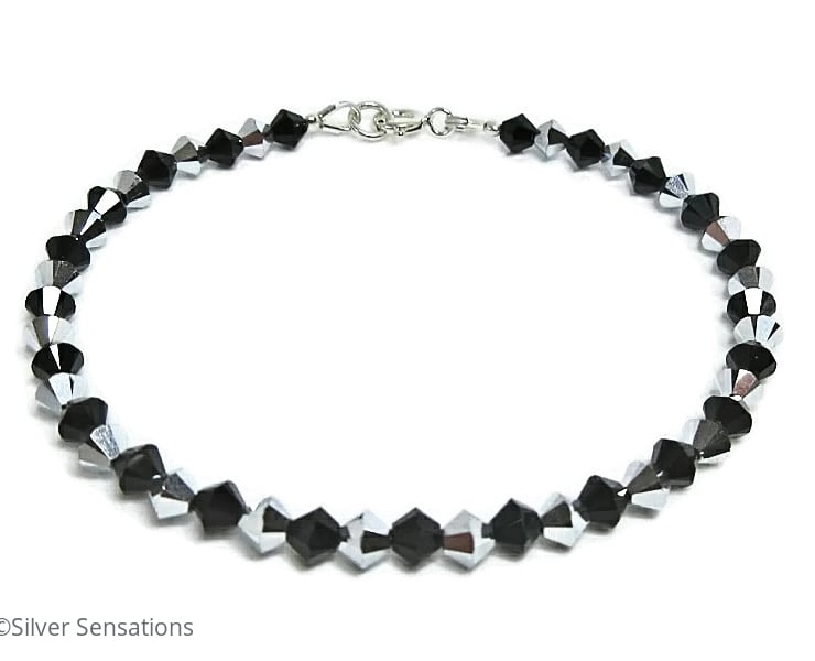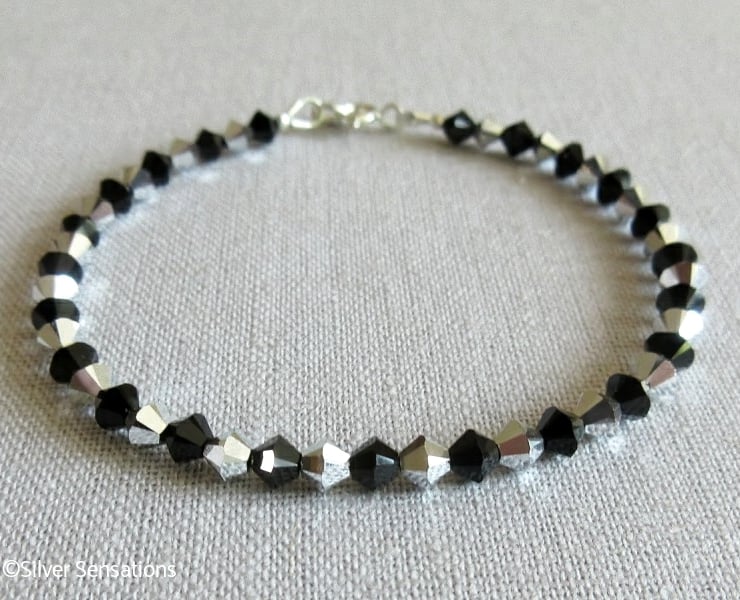 Jet black & sparkly silver premium quality Crystals from Austria adorn this Sterling Silver handmade bracelet.