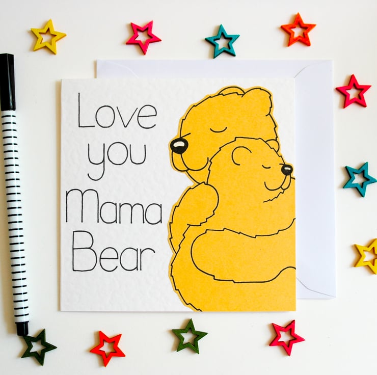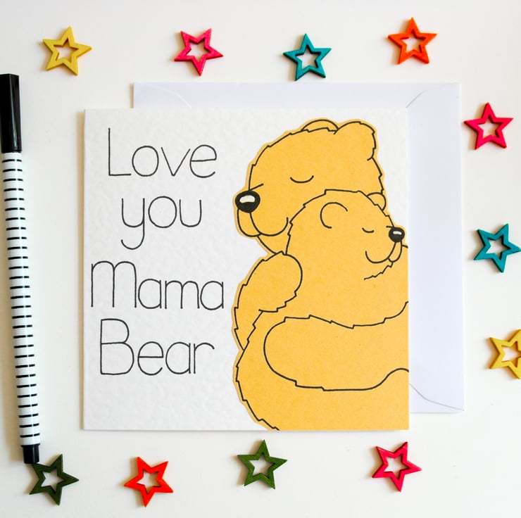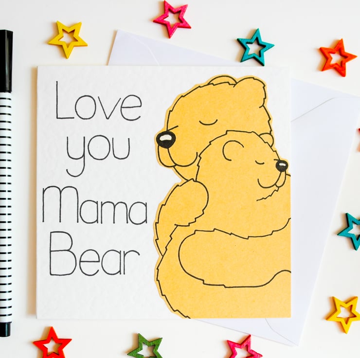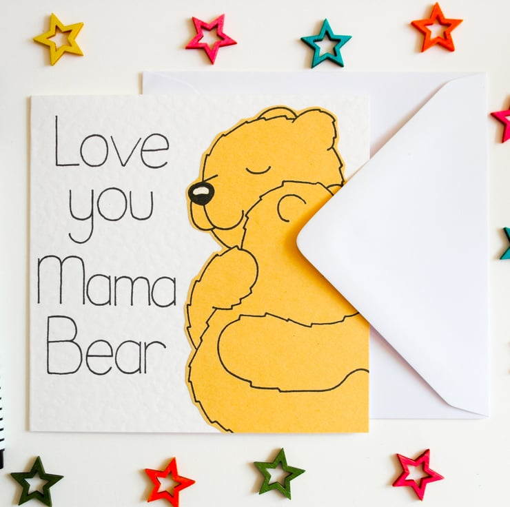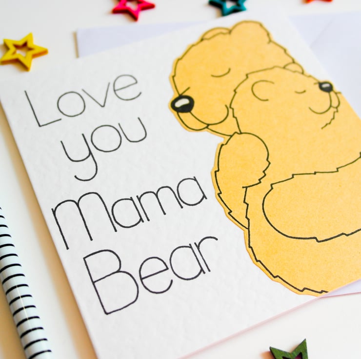 A cute Mama bear and cub card to send to your Mama Bear on Mother's day, her Birthday or just to make her feel special.