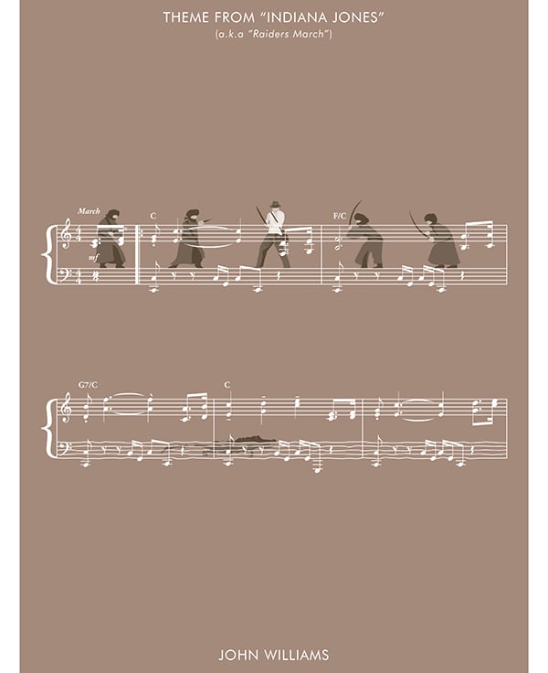 I wanted to showcase the fantastic soundtracks of films that I love. The music for movies is so important and can really get you emotionally involved. My love of soundtracks led me to design the Movie Classics range where I try and merge the sheet music of a main theme with recognisable elements of the film.