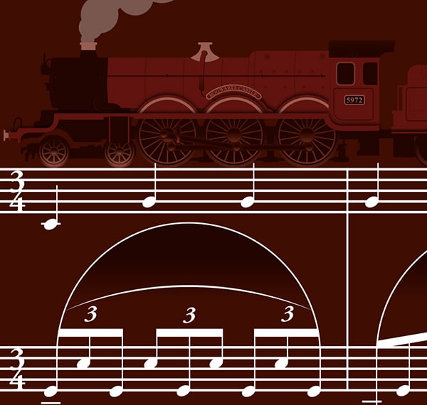 I am creating a series of posters in a range called “Movie Classics”. The theme (excuse the pun!) is showing the sheet music of the main title in an illustrative way and celebrating the brilliant composers behind many of the big screens great motion pictures.