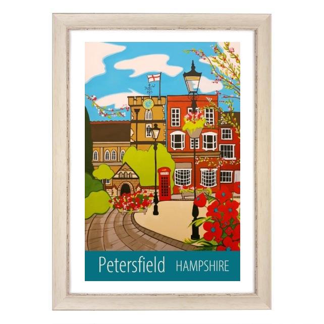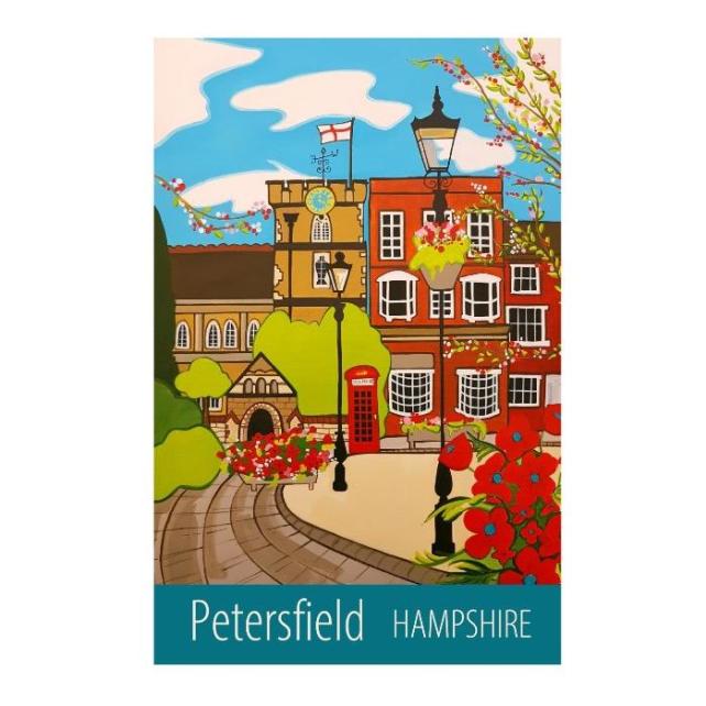 A contemporary travel poster style print of the square in Petersfield, Hampshire, from my own original acrylic painting.