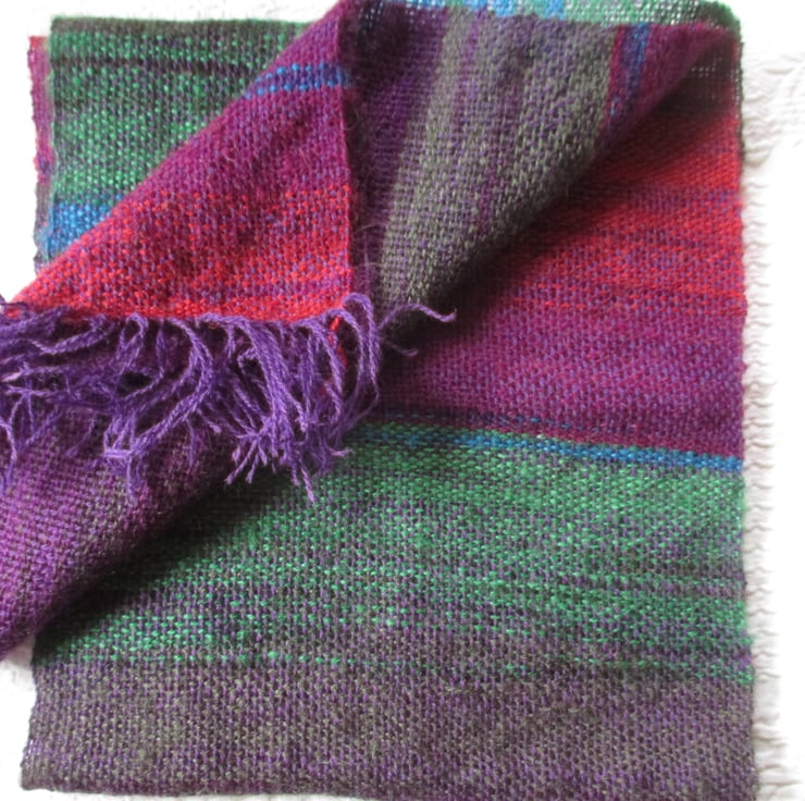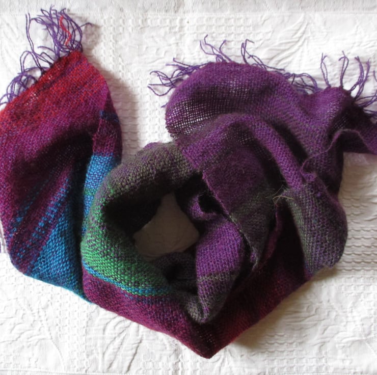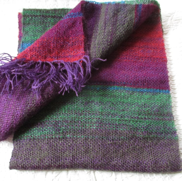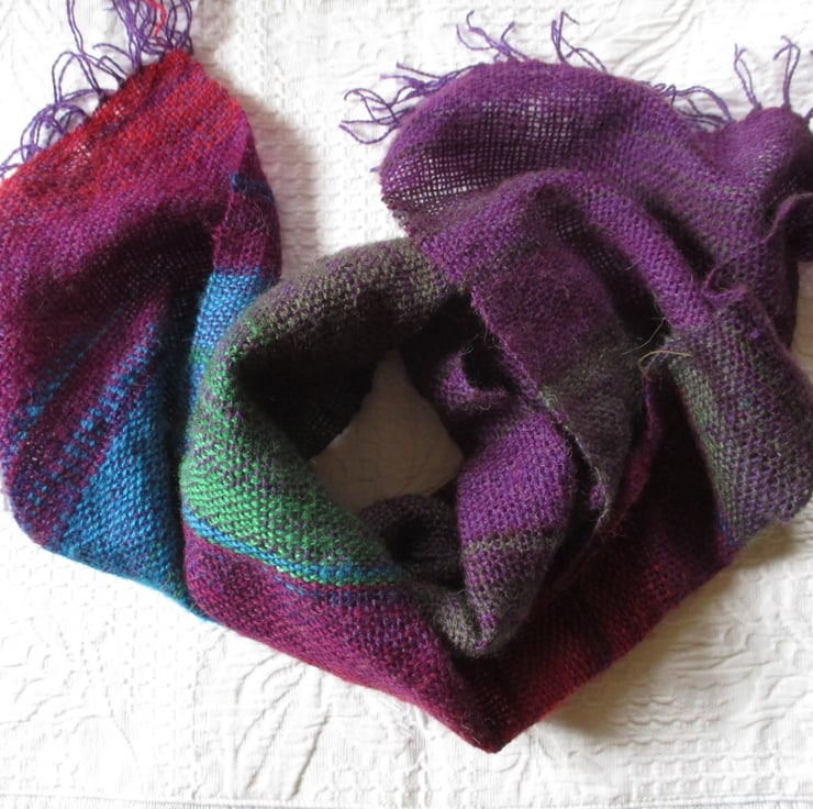 Hand Woven Angora Rainbow Scarf in bold colours