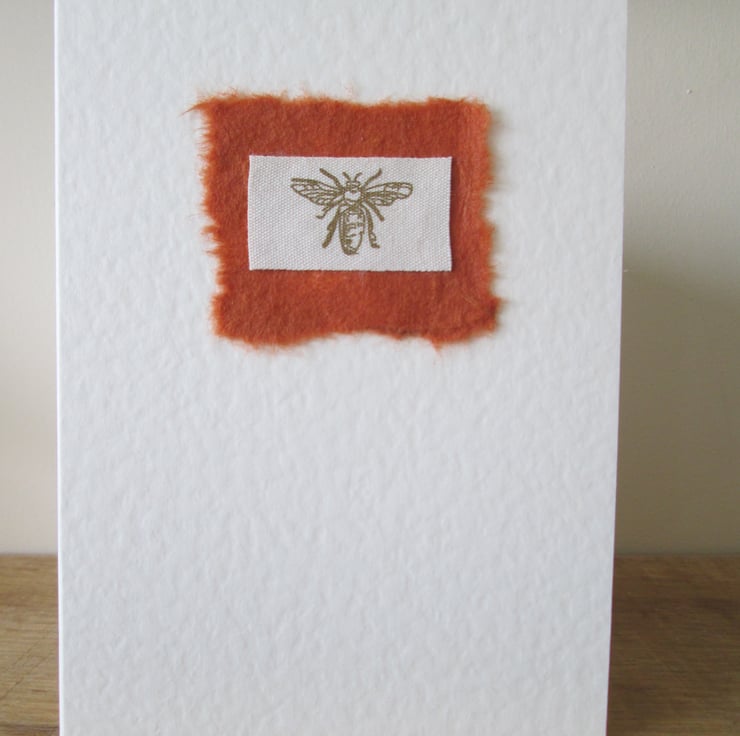 Bee Fabric Card in Gold and Rust, blank inside