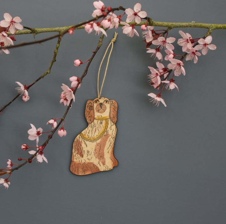 This little hanging is inspired by Antique Staffordshire, Flat Back, figurines that we’re all the fashion in the Victorian times. The Staffordshire Spaniel was possibly the most popular design and found many homes on hearths and window sills. I’ve always been fond of these figurines and with being born and breed in Staffordshire I’ve seen lots!