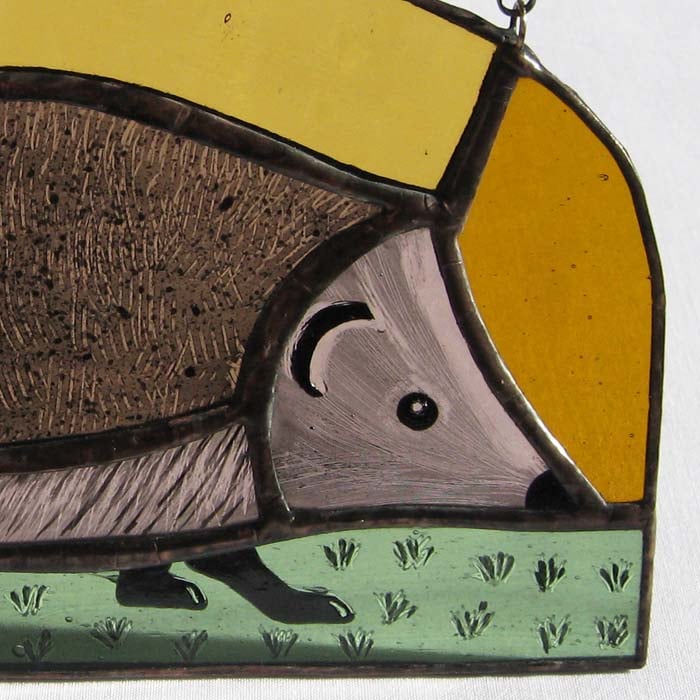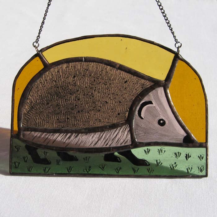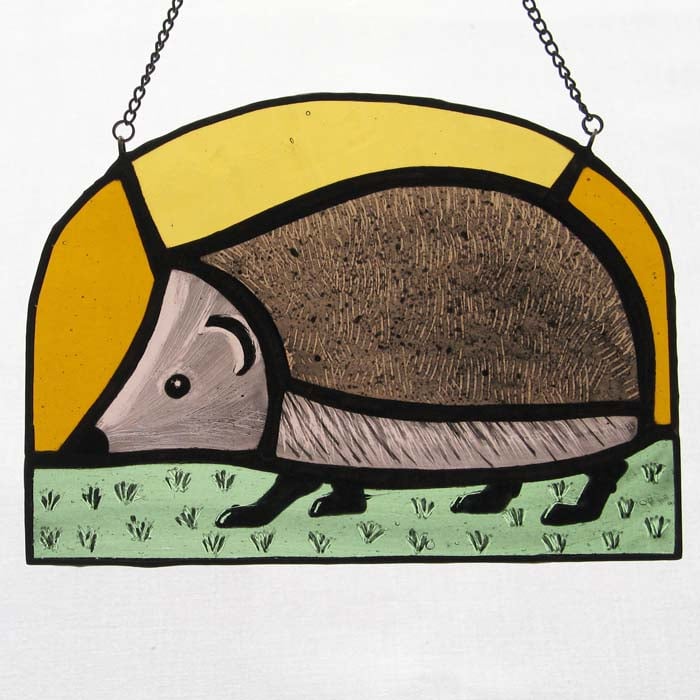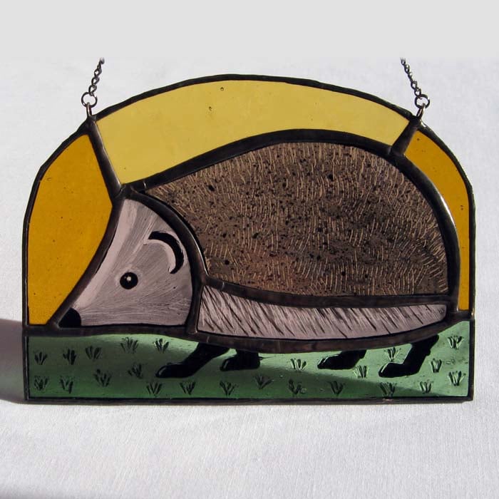Created using traditional stained glass techniques and materials this small panel has been hand painted onto antique style, coloured glass and fired in a kiln. At high temperature the tracing paint fuses together with the glass making the image permanent and enduring.