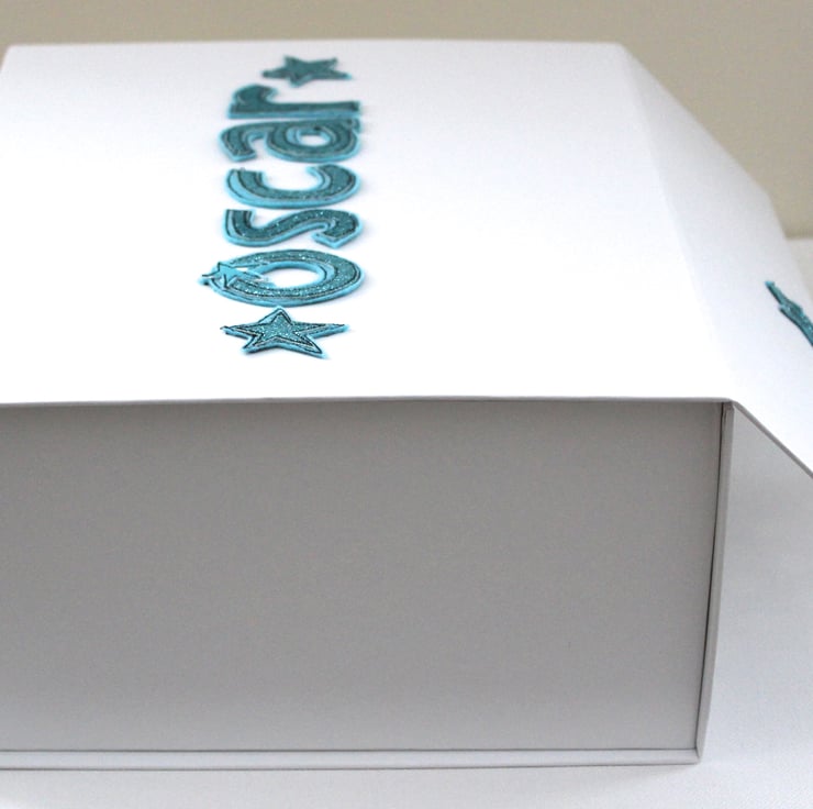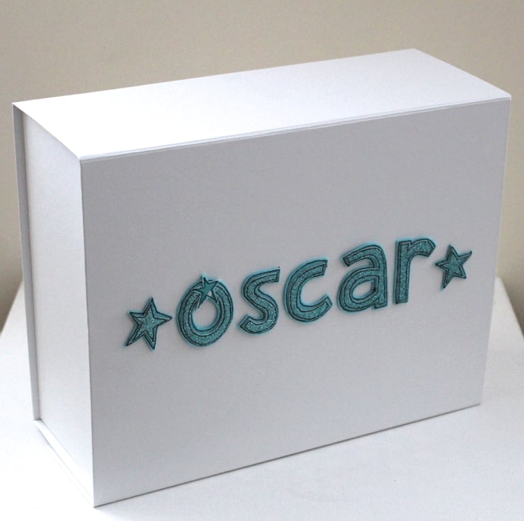 When ordering please state your chosen name (up to nine letters) and the colour you would like your letters and stars to be designed in and I will create a unique box to hold all those special treasures.