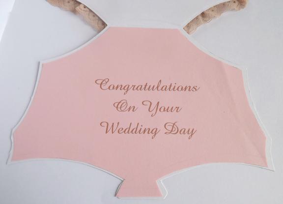 The insert is pink with "congratulations on your wedding day" printed at the centre, the envelope is ivory.