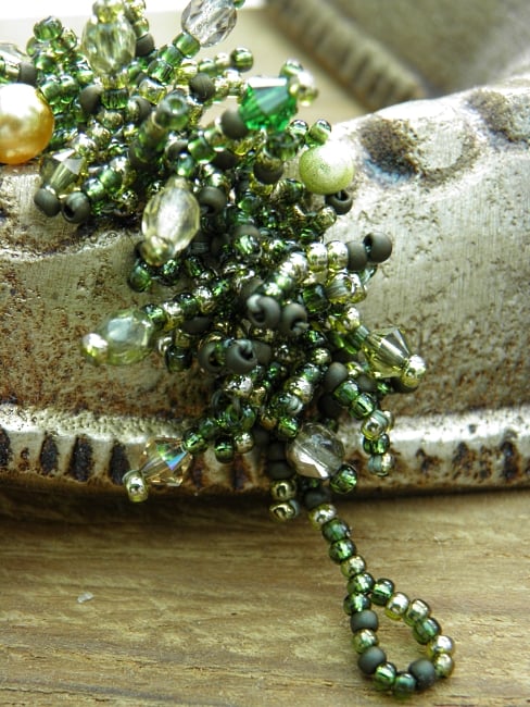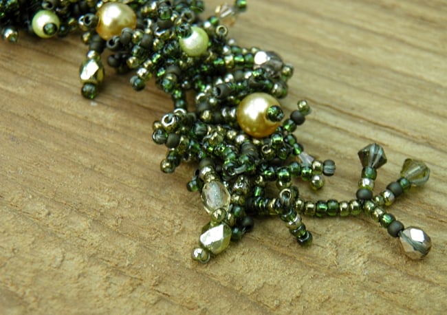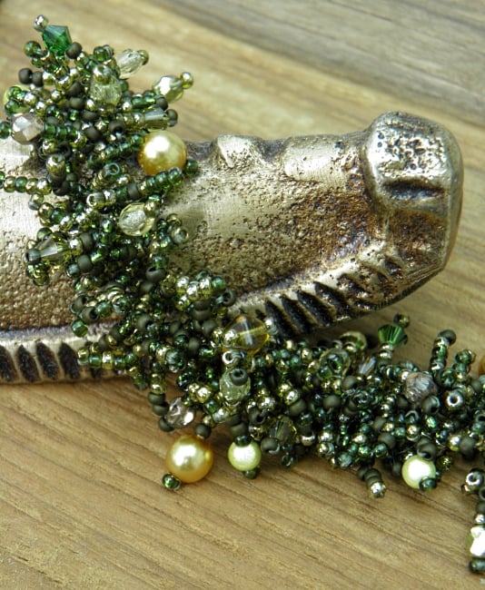 Green and Gold Beadwork Seed Bead Bracelet