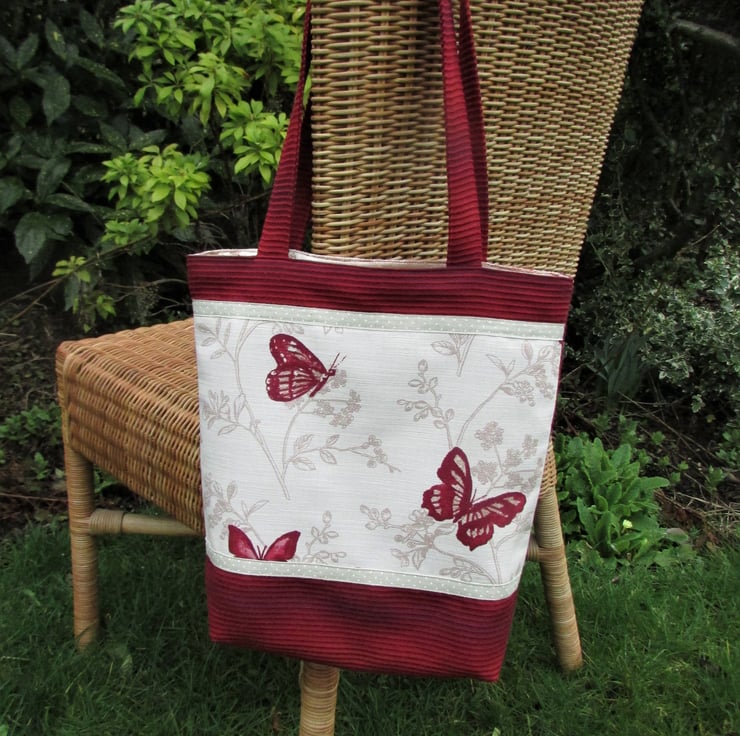 This tote bag is very versatile - perfect for use as a tote bag but pretty enough to be used as a handbag or shoulder bag. With its pretty pattern of butterflies and delicate flowers, it would make a lovely gift for a nature lover.