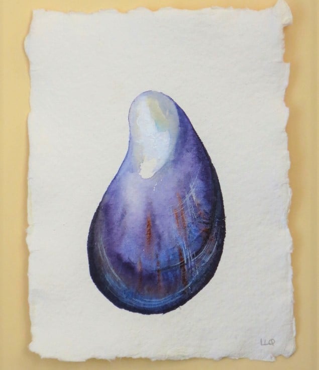 An original watercolour painting of a mussel shell from a collection gathered on my daily walks. Painted in artists quality watercolour on a beautiful piece of deckle edged textured paper. The size is approximately 11x15cm - 6x4inch (approx size due to the uneven deckle edge). The painting is signed in pencil in the lower right corner.