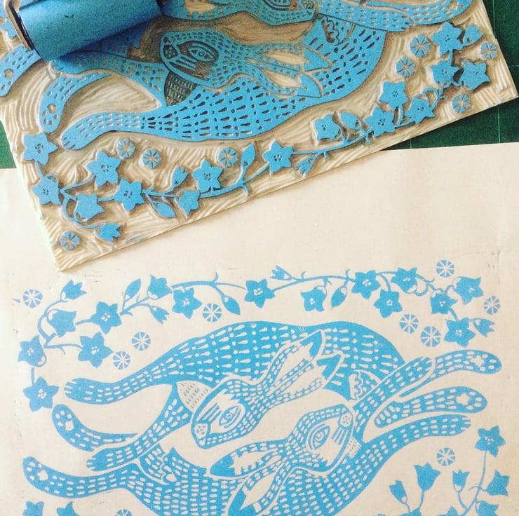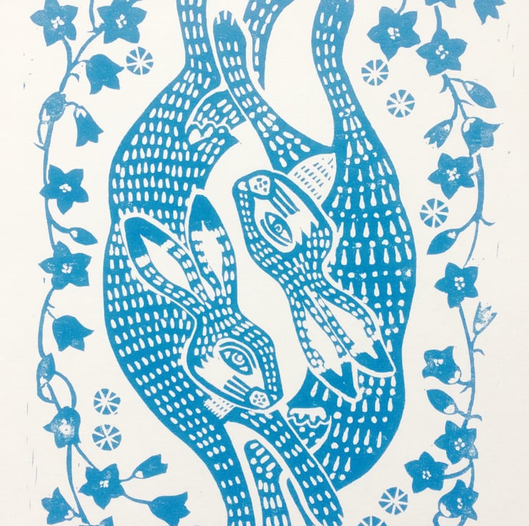 Hand-pressed in cornflower blue on quality A3 size cartridge paper, this original print is a perfect gift for springtime. It's a limited edition of 45, is signed and numbered and fits perfectly into an IKEA Ribba frame for an affordable gift. Sent carefully wrapped and rolled within 5 days. (The design is also available on a matching organic cotton tea towel and kitchen apron.)