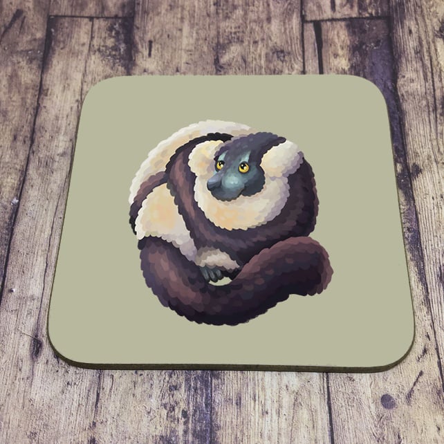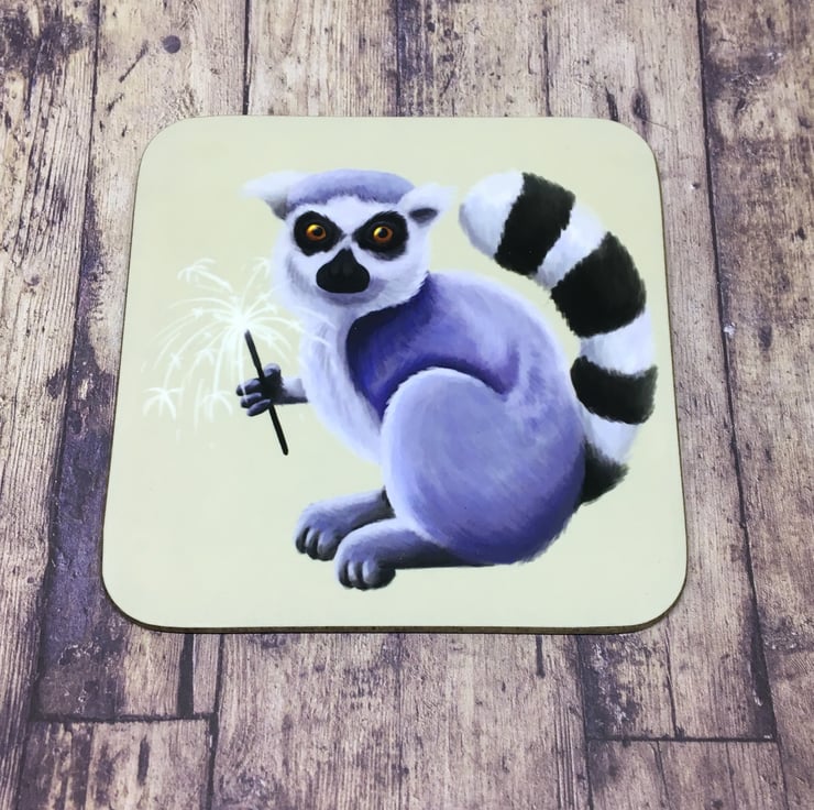 Lemur coaster. Unisub Hardboard Coaster, 9cm square.