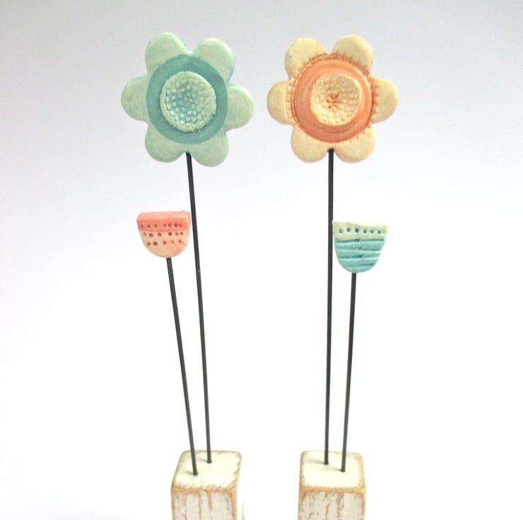 This piece is one of a kind, created from my love of making, exploring and mixing different materials to make a pretty scene that brightens any day.