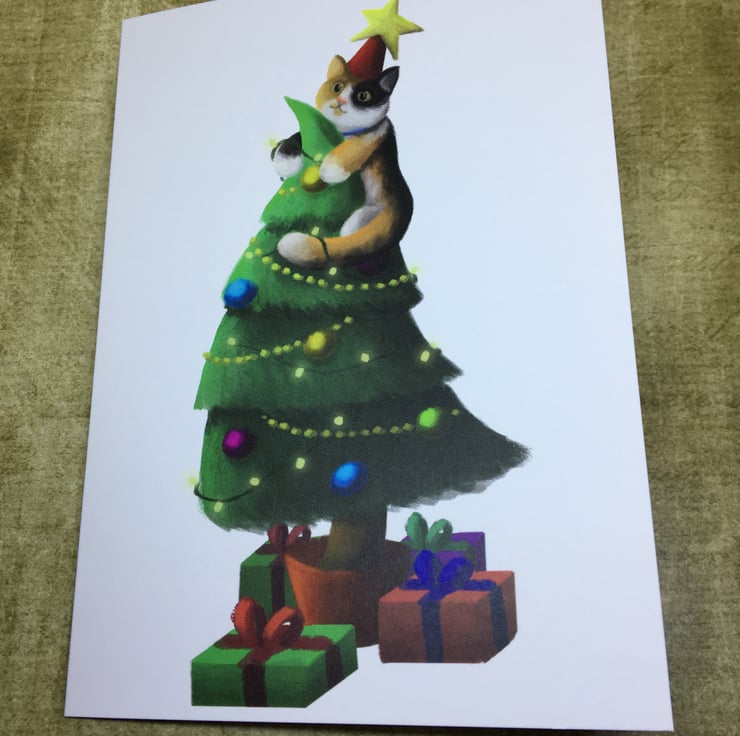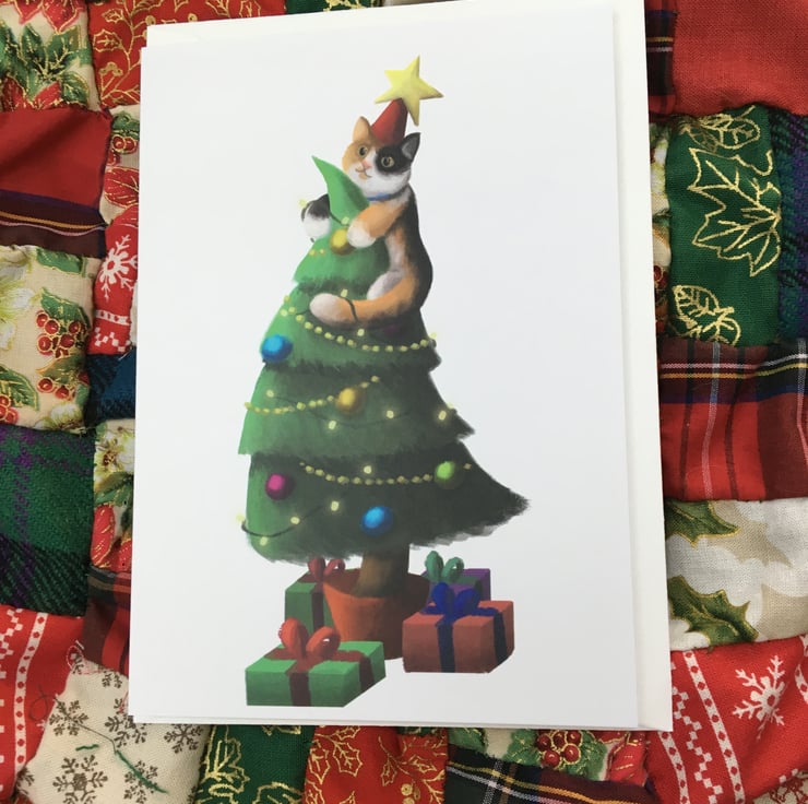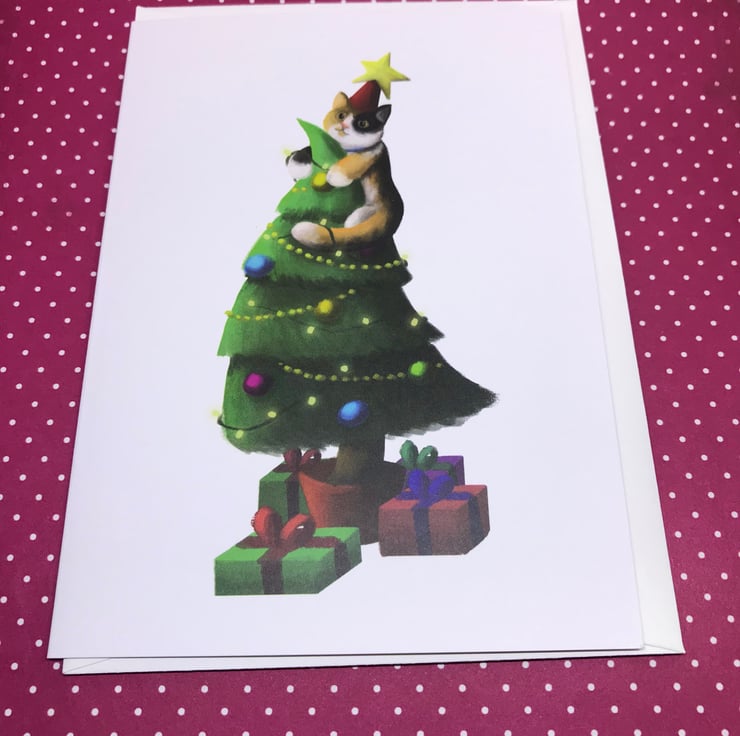 A cute Catmas Tree blank greeting card with white envelope by DuffleCat Prints (Damian Case)