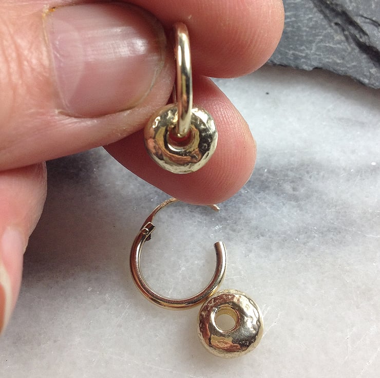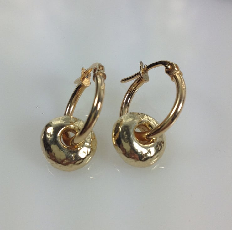 The chunky solid beads measure approx. 9mm x 3mm. The hoops measure about 14mm.