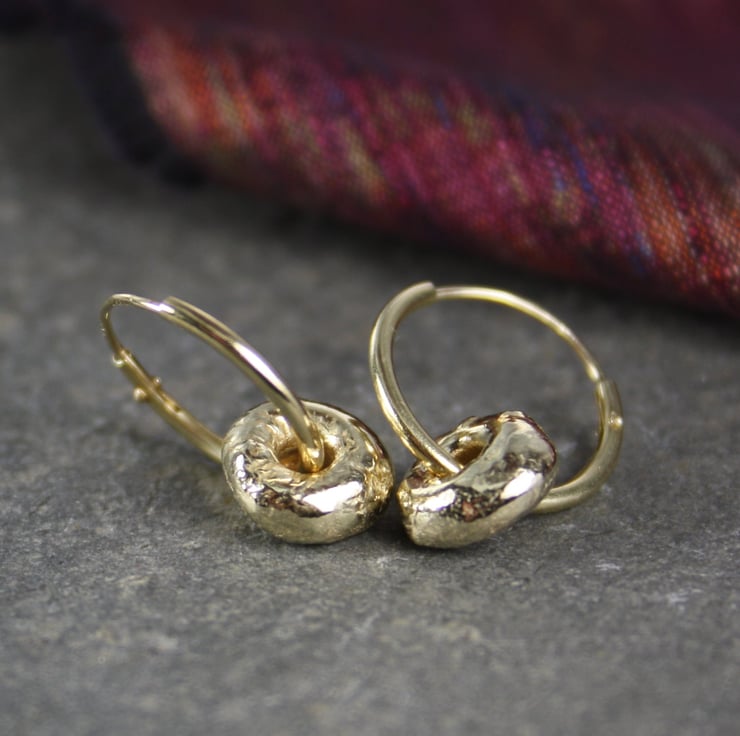 Small 9ct yellow gold nuggets on lever back hoops.