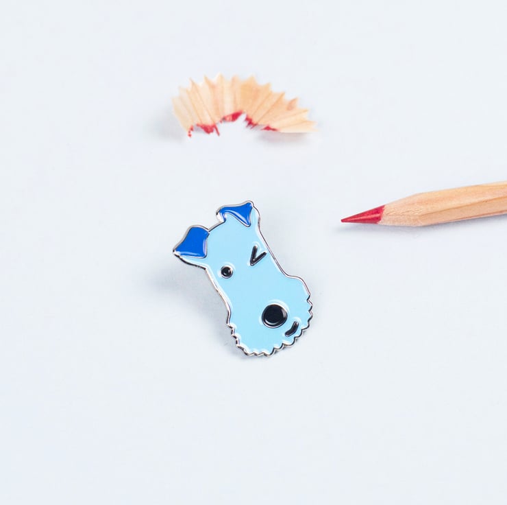 Approximately 3cm x 2cm (1.5" x 0.75") in size, this dog pin is packaged in a small kraft box, decorated with a sticker and posted in a padded envelope to ensure it arrives in tip-top condition.