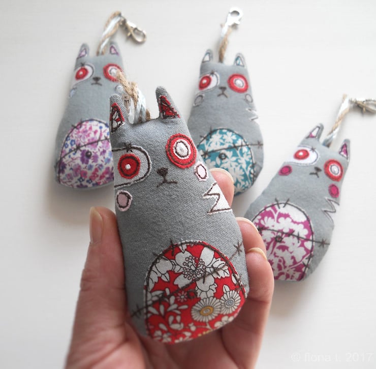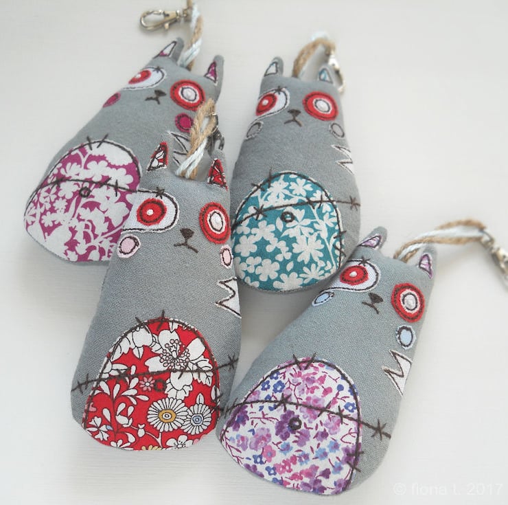these deadly cute miniature fabric zombie cats measure about 10cm (3.5 inches), excluding hanging string & twine loop and bag charm clip.