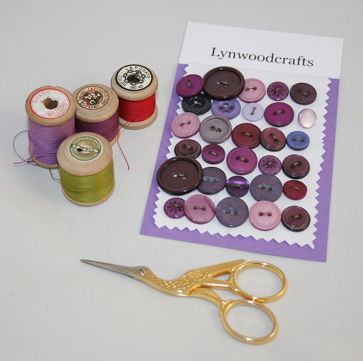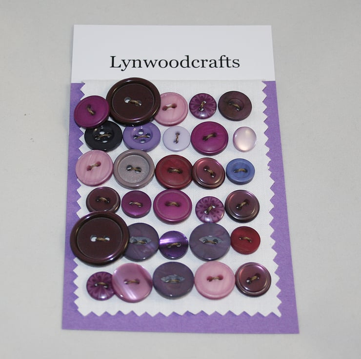 30 buttons in shades of purple, lilac and plum, listed in my continuing attempts to 'share my stash'.