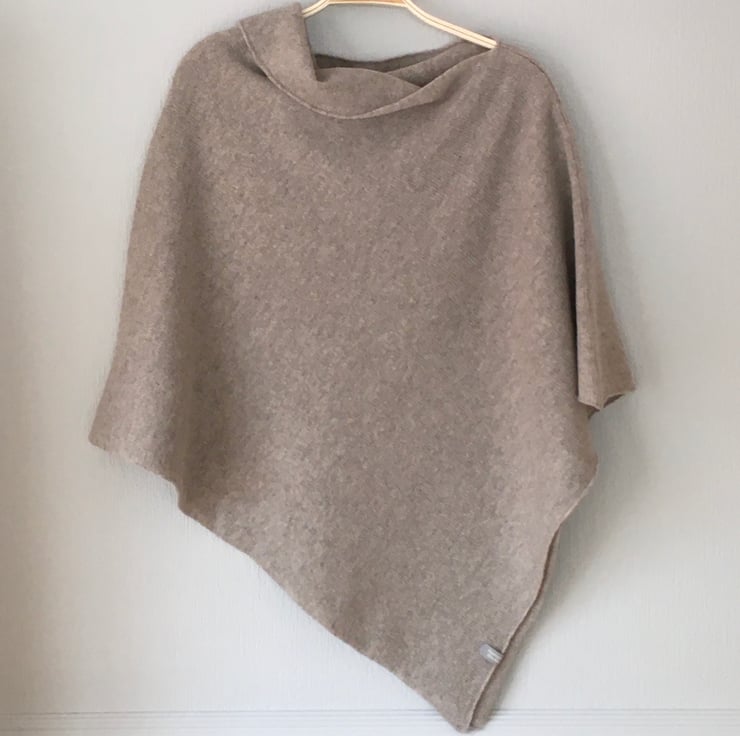 Luxurious British Spun merino lambswool yarn the poncho is beautifully soft and cosy. Great for layering piece, it's the perfect choice for any outfit adding style and texture to your look. Perfect worn with smart trousers or jeans and statement jewellery or scarf for added interest. Ideal for a spring/summer walks or tucked up at home.